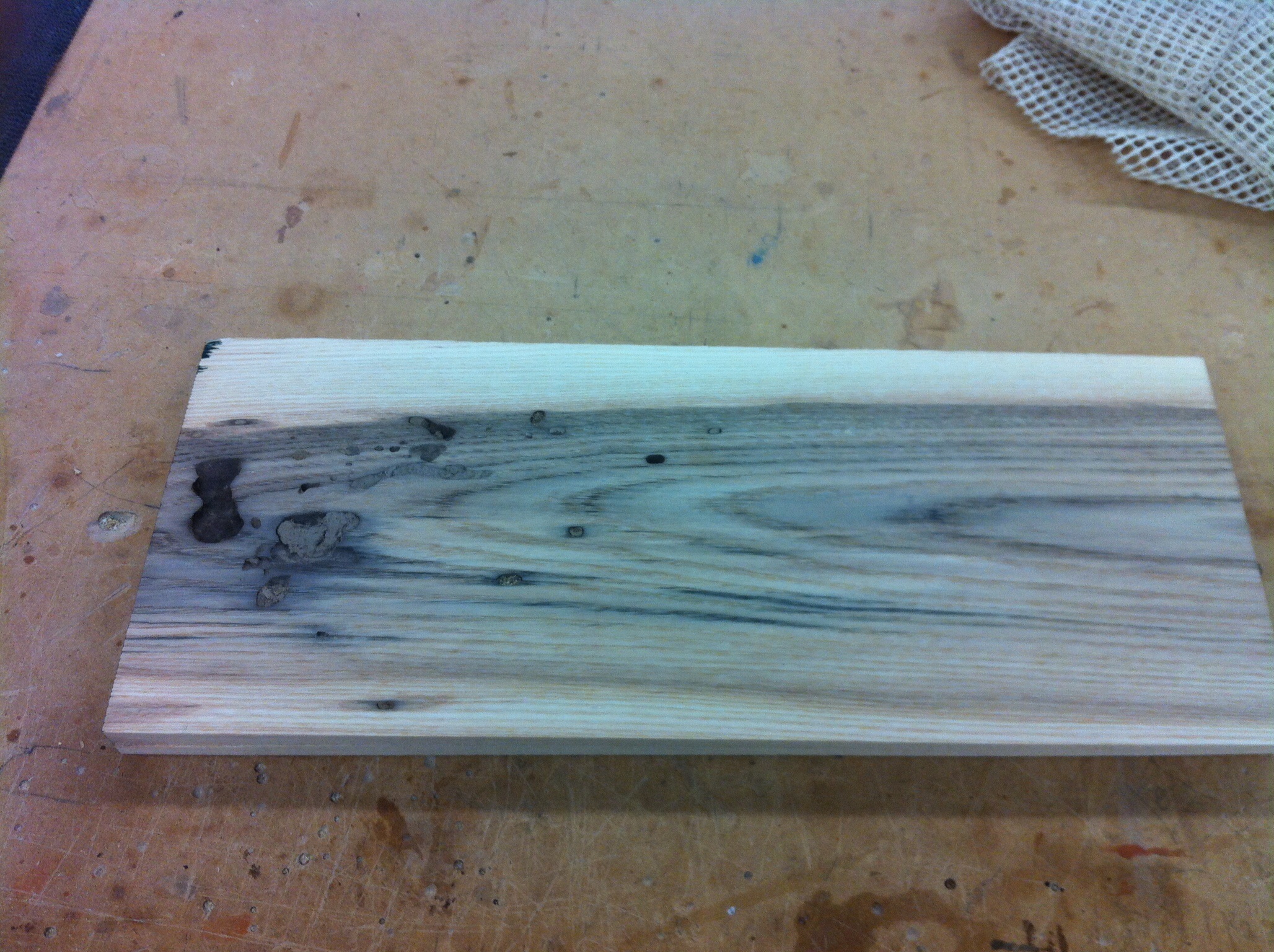 En tournant un coin de l’atelier je suis tombé sur cette planche de frêne abandonnée.